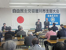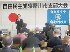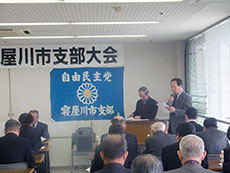 平素は格別のご厚情を賜り感謝申し上げます。3月23日(土)寝屋川市民会館に於いて、平成25年度自由民主党寝屋川市支部の支部大会が開催されました。 私たちの街、寝屋川市をもっと住みよい安心・安全な街にしたいと市内各所で活躍頂いている多くに党員と来賓として、 自由民主党大阪府支部連合会 会 長 竹本直一 様 事務局長 稲垣克彦 様 衆議院議員 北川知克 様 など多くの方々にご出席頂き、24年度活動報告・会計報告・監査報告に続き、25年度の活動方針・支部大会宣言・大会決議等が可決されました。 ここに、ご報告とともに、活動方針・支部宣言・支部決議を掲載させて頂きます。ご一読頂ければ幸いです。今後とも一層のご協力、ご支援をお願い致します。